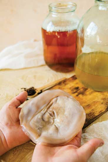 The same care recommendations go for Jun SCOBYs as for kombucha; just keep them separate from each other if you’re keeping both. I recommend a SCOBY hotel — that is, keep excess SCOBYs in a jar, covered in plenty of Jun brewed from previous batches. Cover the jar with a tightly woven cloth cover. You won’t need to feed the hotel or do much at all; just rotate the backup SCOBYs into your weekly brews to keep them happy.